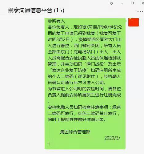 公告:疫情防控期间,做好疫情防控工作,是各企事业单位的重要工作,更是法定责任,根据法律规定,企业应根据当地政府要求及时采取疫情防控措施并履行报告义务,引导、教育员工不信谣、不传谣、不隐瞒病情,做好关于新冠疫情的宣传工作,正确认识疫情对待疫情。做好疫情防控常态化的工作准备。